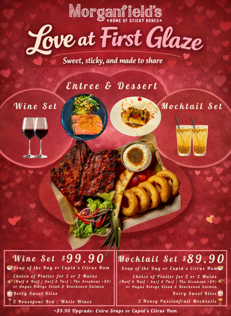 From 9–15 Feb, treat your special someone to our Valentine’s Feast for Two — a romantic 3-course dinner with Honey Rum Baby Back Ribs, Berry Sweet Bliss, and drinks to toast the night, from $89.90.